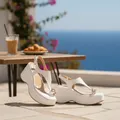 Sandália Plataforma Branca: Elegância e conforto em um só calçado.