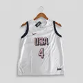 Camiseta de basquete com estampa USA feita para alto desempenho e estilo. Tecido leve e respirável favorece mobilidade e mantém o corpo mais seco durante treinos e jogos. Modelagem sem mangas com contorno fluido para movimentos amplos. Detalhes em vermelho e azul com o número 4 e o logo da Nike garantem visual moderno e qualidade. Perfeita para treino, partidas ou usar no dia a dia com vibe esportiva.
